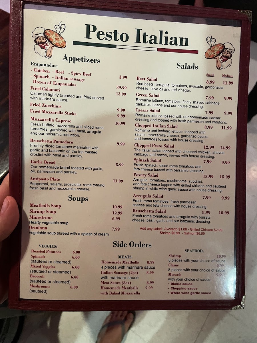 If you're craving authentic Italian cuisine in Torrance, look no further than Pesto's Italian Restaurant Menu. Located at 3879 Pacific Coast Hwy, this cozy spot offers a variety of classic dishes that will transport you straight to Italy. Whether you're in the mood for a fresh, vibrant pasta or a savory pizza, there's something on the menu to satisfy every taste. The rich, homemade sauces and the perfect blend of herbs and spices make each dish a true delight. For those looking to indulge, their seafood and meat options are equally mouthwatering. Don’t forget to try one of their signature sides or a refreshing salad, which pair beautifully with any main course. Whether you're dining with friends or enjoying a quiet meal on your own, the menu at Pesto's is all about bringing the flavors of Italy to your table.